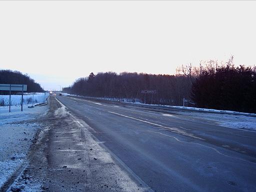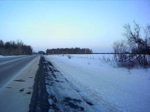 Cette photo fut prise entre Crabtree et Saint-Paul. Vous voyez la distance considérable entre la route et la clôture? En fait, vous la voyez, la clôture? On la voit bien quand on regarde à droite, sur la photo. Il y a tout l’espace requis pour construire la deuxième chaussée.