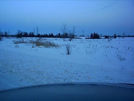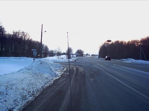 Nous sommes ici à Saint-Jacques-de-Montcalm, le long de la route 158, et l’on regarde en direction est. Voyez la clôture, qui est à une distance normale pour une route à deux voies sur une seule chaussée.