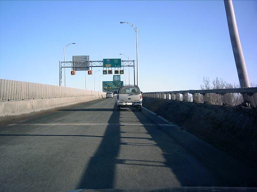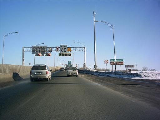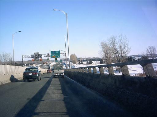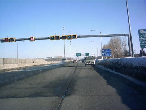 Cette photo, qui fut publiée dans l’hebdomadaire local Le Courrier Sud, montre l’A-55, en direction sud, à la hauteur de l’intersection du boulevard des Acadiens. Site de plusieurs accidents, parfois mortels, cette intersection sera éventuellement transformée en échangeur autoroutier; selon ce que rapportait le maire de Bécancour, Maurice Richard, lorsqu’il fut interrogé par la journaliste de cet hebdomadaire, en novembre 2008, il s’agirait d’un projet à moyen terme.