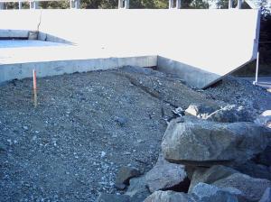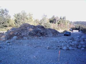 En me retournant vers le nord, on voit la fin de l’amoncellement de blocs de styromousse, à l’endroit où il reste encore un peu de montagne à retirer.