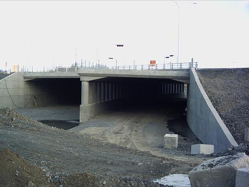 Ici, c’est l’A-50 vers l’ouest, toujours depuis le même viaduc. Comme on peut le voir, c’est presque complété; les glissières de sécurité sont en place, les deux types de signalisation aussi, de même que l’asphalte, à tout le moins la couche de base.