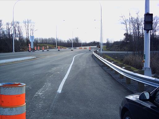 L’A-50 vers l’est, depuis le viaduc de l’échangeur. À cause de l’aspect montagneux du paysage, on a construit l’échangeur de la route 321 sur une espèce d’extension du chemin de la côte des Cascades. Au premier coup d’oeil, le tout peut sembler bizarre, mais lorsque l’autoroute sera ouverte, et que l’on verra toute la signalisation, tout deviendra simple.