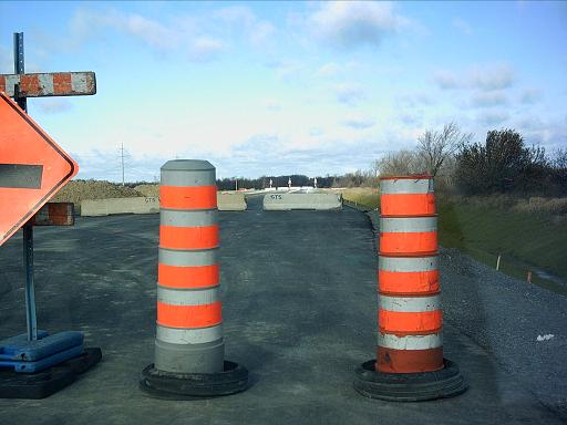 Je ne sais pas quelle est la firme de construction qui a réalisé ce tronçon de l’A-50, mais elle a un moyen bien à elle de signaler les limites de son chantier; deux panneaux à damier, installés dos-à-dos, tout près de la limite des travaux qu’elle a complété. Vue vers l’est,…
