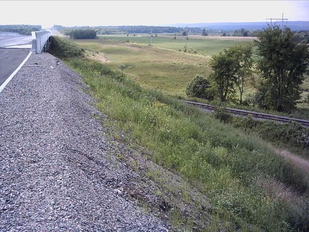 On regarde à nouveau vers l’est (je sais, je suis en train de vous étourdir), cette fois depuis l’approche est du viaduc de la montée Labranche, à Brownsburg-Chatham.  On voit au loin le raccordement des chaussées.