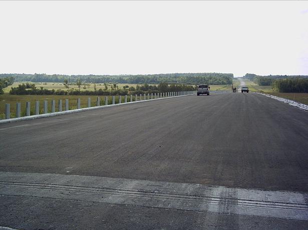 J’en profite ici (mais c’est la dernière fois, sinon, on pourrait me prendre pour un profiteur) pour répondre à une question que certains se sont peut-être posée, à savoir pourquoi faire un trou dans les poteaux de bois des glissières de sécurité.  D’abord, vous remarquerez que seulement les premiers poteaux sont en bois.  Les autres, plus loin, sont en acier galvanisé.  Ces poteaux percés se brisent plus facilement, et absorbent ainsi une partie importante de la puissance de l’impact, lors d’une collision, ce qui réduit d’autant la gravité des blessures infligées aux occupants d’un véhicule.