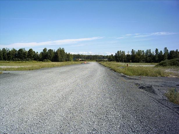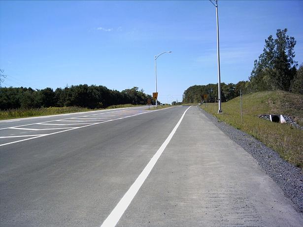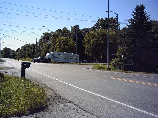 J’ai décidé, une fois sorti de l’autoroute, de me rendre tout au bout de la nouvelle rue. Alors d’intersection en intersection, j’ai finalement abouti à la toute fin de la rue Samuel-Racine Est. Les véhicules que l’on voit, au loin, circulent à vive allure, sur la route 131.