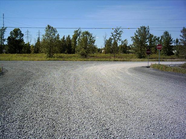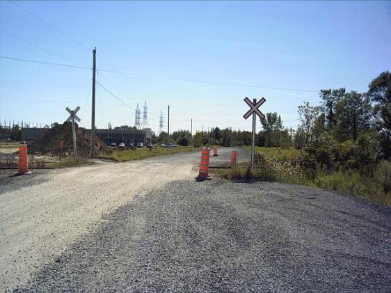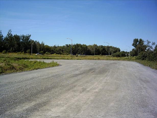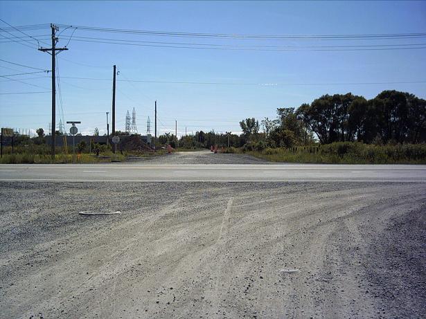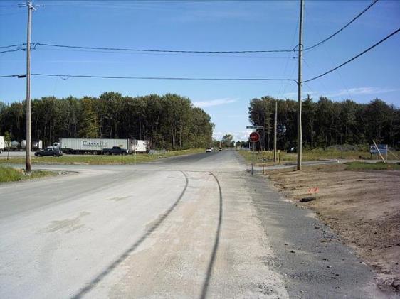 Voici l’endroit où la nouvelle rue Samuel-Racine croise la route 158 (chemin des Prairies), tout juste au sud de l’échangeur A-31/QC-131/QC-158. De l’autre côté de la route 158, on voit, au loin, la traverse de chemin de fer…