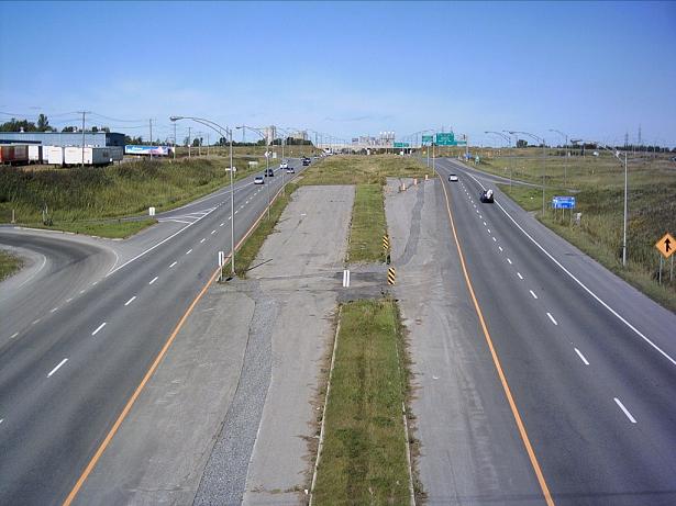 Pendant que je me trouve à Joliette, autant en profiter pour prendre en photo la route 158, à la hauteur du chemin Base-de-Roc, là où l’énorme échangeur de ce qui devait être l’A-50 prend forme. La dernière fois que j’ai photographié cet endroit, c’était en plein hiver, et on ne voyait pas les voies rapides centrales, parce qu’elles étaient ensevelies sous la neige.