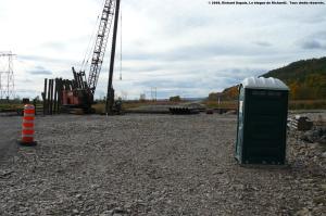 Je dois d’abord mentionner que je suis désolé, puisque ces photos datent de presque quatre mois. Je les ai prises en juin dernier, lors de deux sorties distinctes. La première, le 1er juin dernier, m’a permis de prendre une seule photo du chantier du nouveau pont des Piles, à Shawinigan, photo sur laquelle, j’avoue, on ne voit pas grand chose. La seconde sortie date du 26 juin, et se résume à quelques photos de la future fin de l’A-55, à la hauteur de l’A-20, à Sainte-Eulalie, c’est à dire là où il ne se passe rien depuis la fonte des neiges. Voyons voir…