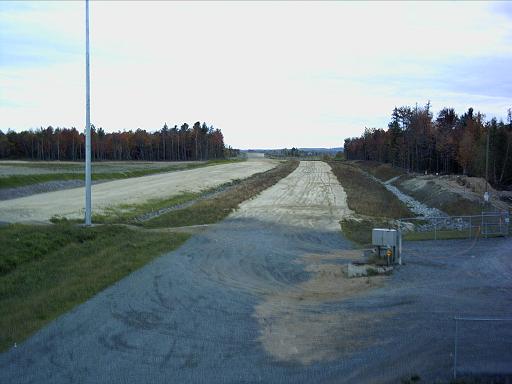 Situé dans le canton de Melbourne, en Estrie, ce lieu devait être celui d’un échangeur, mais quand on a décidé d’éliminer l’A-51, et de faire passer l’A-55 par Drummondville, cette grande courbe, sur le chemin situé au sud de l’autoroute, est devenue bien inutile. Par contre, elle nous permet de voir les dimensions de la boucle que devait opérer l’A-55 si elle avait été construite; celle-ci devait arriver du coin nord-est de l’image, puis passer sous les ponts que l’on voit au niveau du petit sentier, là où les chaussées de l’A-55 se séparent. Vous pouvez voir plus de détails sur ce lieu dans ce billet, qui date de… bien plus longtemps que cela.
