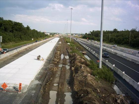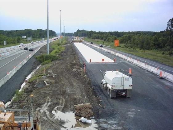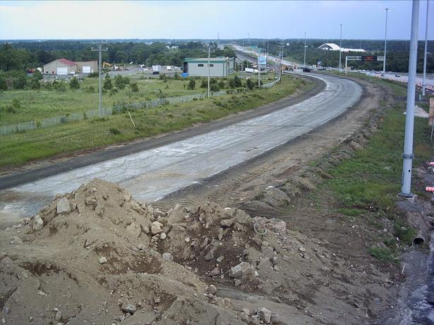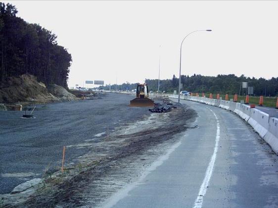 Depuis le boulevard du Grand Héron, encore une fois, il s’agit maintenant de la vue en direction sud, de ce même chantier, soit celui de la reconstruction complète, en béton, de la chaussée en direction nord. Celle en direction sud fut reconstruite l’an dernier.