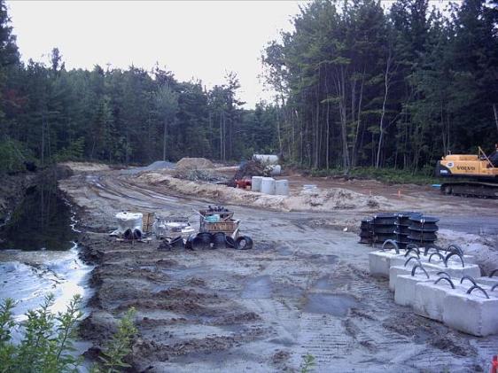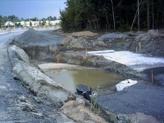 Les pluies abondantes de juin ont laissé leurs traces sur le chantier. Le réceptacle d’égout montre la hauteur – ou devrais-je dire la profondeur – de la future bretelle de la sortie 25 de l’A-15 nord.