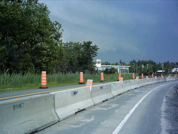 La bretelle de sortie actuelle, en provenance de l’A-15 nord, est rétrécie, vers la gauche, de façon à laisser de la place pour le chantier. C’est du développement, à l’ouest de l’A-15, qui amène à cette modification de l’échangeur.