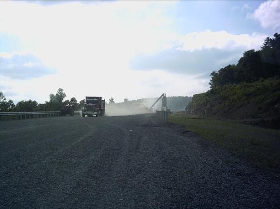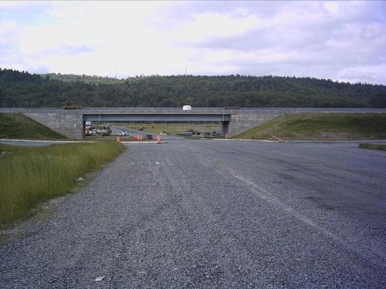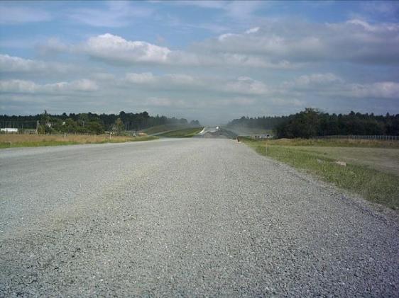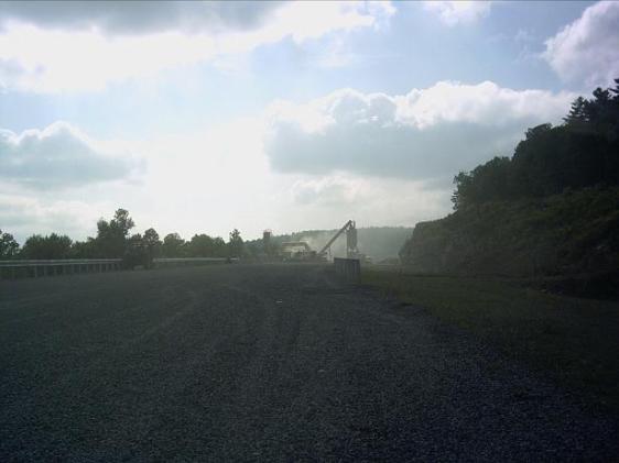 …ce trou, dans lequel une armature a été assemblée, et attend d’être bétonnée. Par la forme, je présume qu’il s’agit d’un réservoir, à être relié au système d’égout, semblable à celui qui ne porte qu’une demi-tonne, de l’autre côté. Il est situé sensiblement au même endroit, soit entre la chaussée et la voie d’accès à la halte routière,…