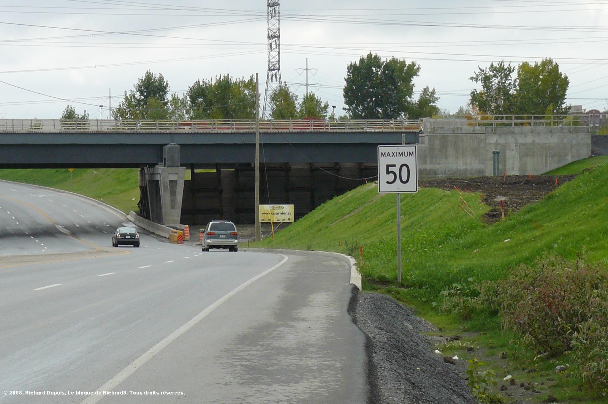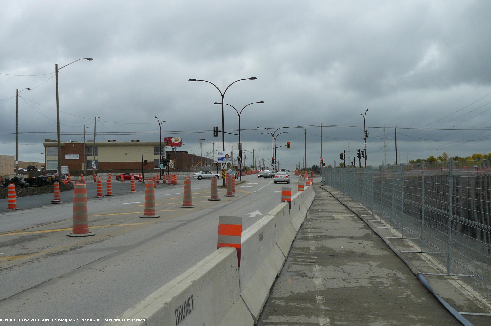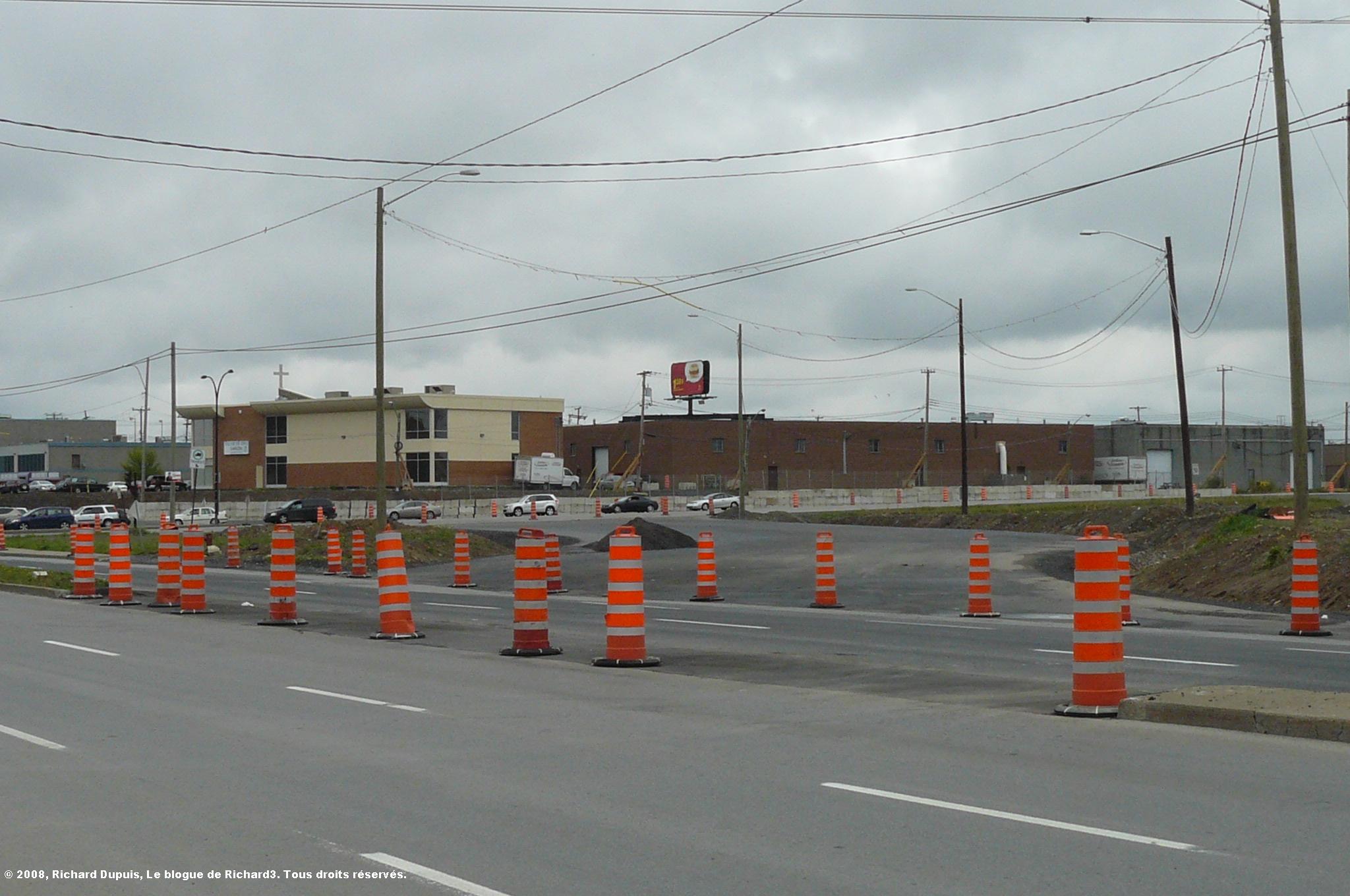 Sur la montée Saint-François, toujours à Plaisance, la chaussée a été excavée, pour faire place à l’A-50, alors que le trafic lourd croise le chemin de déviation.