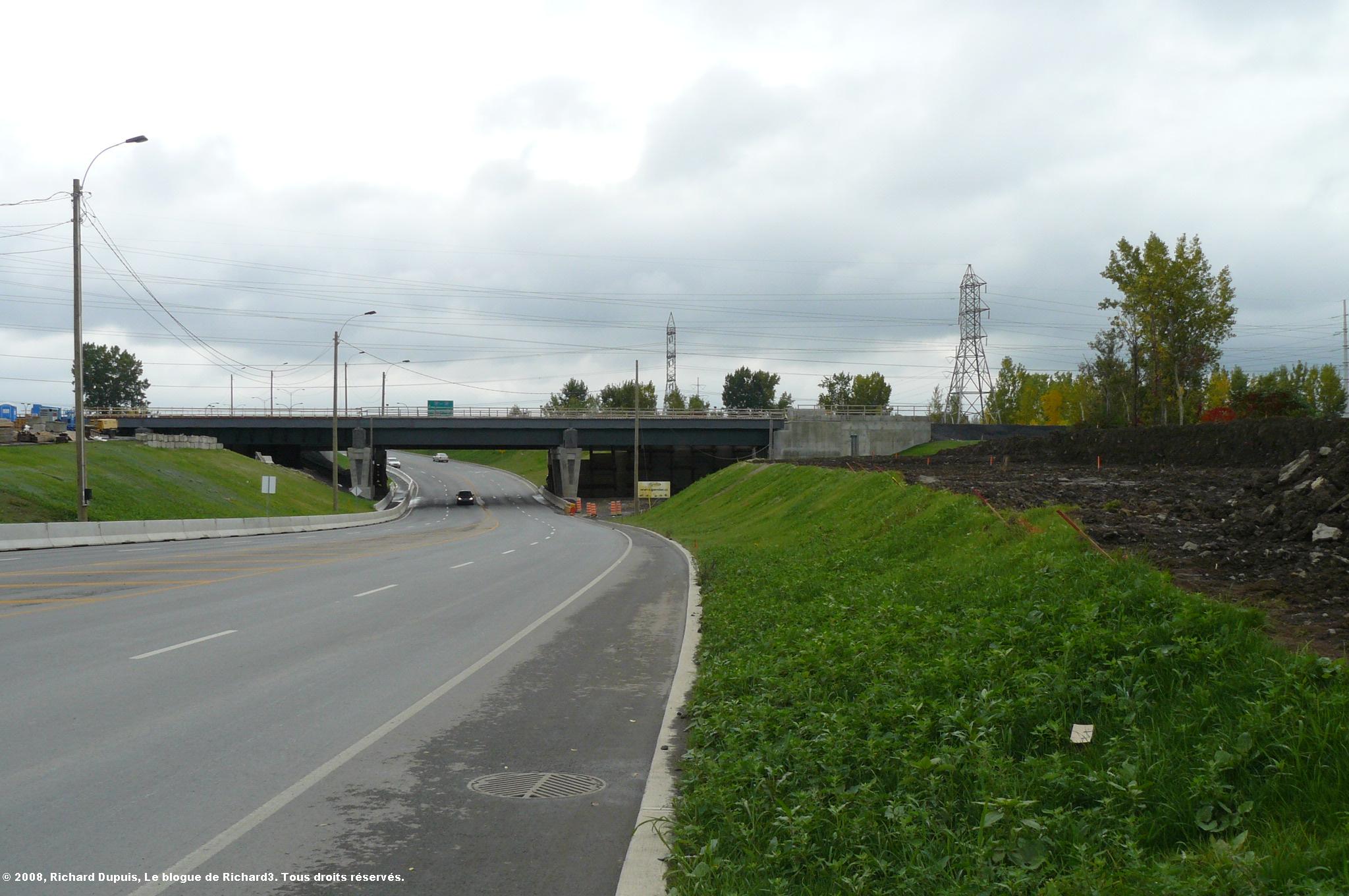 …alors que le long de la côte des Cascades, là où donnera l’échangeur de la route 321 (côte Saint-Amédée), les choses avancent rondement, là aussi. Le viaduc de la côte des Cascades est en construction, près du cap rocheux, au fond.
