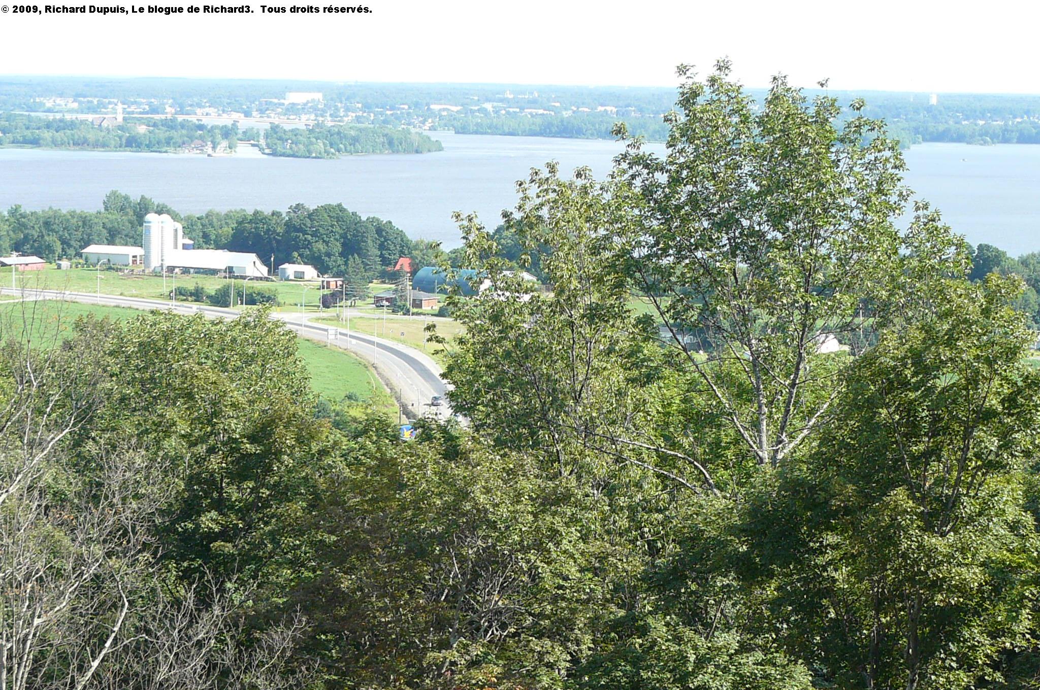 Voilà ce que l’on voit lorsque l’on redescend le chemin, en direction de la route 148; un viaduc, qui apparaît comme ça, et qui ne bloque même pas la vue vers la rivière des Outaouais.  Je me suis alors demandé quel serait le même point de vue, mais du haut du viaduc.