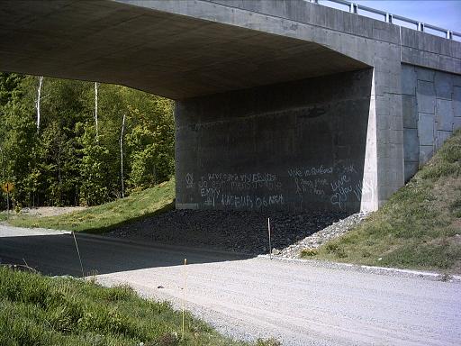 Vu sous cet angle, on dirait que le viaduc de la route 148 a été déposé sur deux bouts de tapis. Je n’ai pas de confirmation, mais la plupart des ponts et viaducs de la section Lachute/Brownsburg-Chatham semblent avoir été coulés sur place.