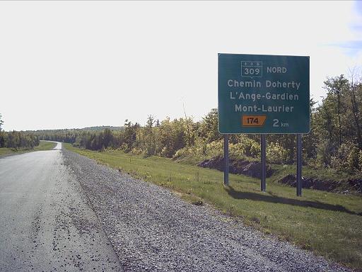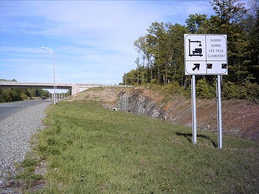 Ce panneau ne fait évidemment pas partie du nouveau tronçon de l’A-50. Je l’ai photographié parce qu’il représente l’un des derniers spécimens encore debouts de ces anciens panneaux indicateurs de sortie, sur les autoroutes, désormais remplacés par des panneaux aux dimensions beaucoup plus modestes. Il s’agit de la sortie 258, qui mène à la route 327, entre Lachute et Saint-André-d’Argenteuil. Cette sortie fait partie du vieux tronçon qui contourne la ville de Lachute, et qui date de 1975. C’est donc dire que ce panneau risque d’avoir plus de 30 ans, ce qui explique sa décoloration.