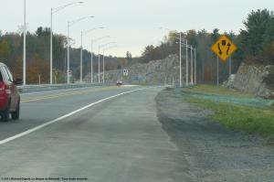 Cette fois, nous sommes à la fin actuelle de la future bretelle en direction de l’A-20 ouest, vers Drummondville et Montréal. Ce bout de bretelle fut réalisé à l’été de 2023.