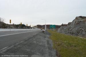 On voit ici l’extrémité du musoir qui séparera les voies de l’A-55 sud de la bretelle vers l’A-20 ouest. De l’autre côté du muret, c’est l’A-55 actuelle.