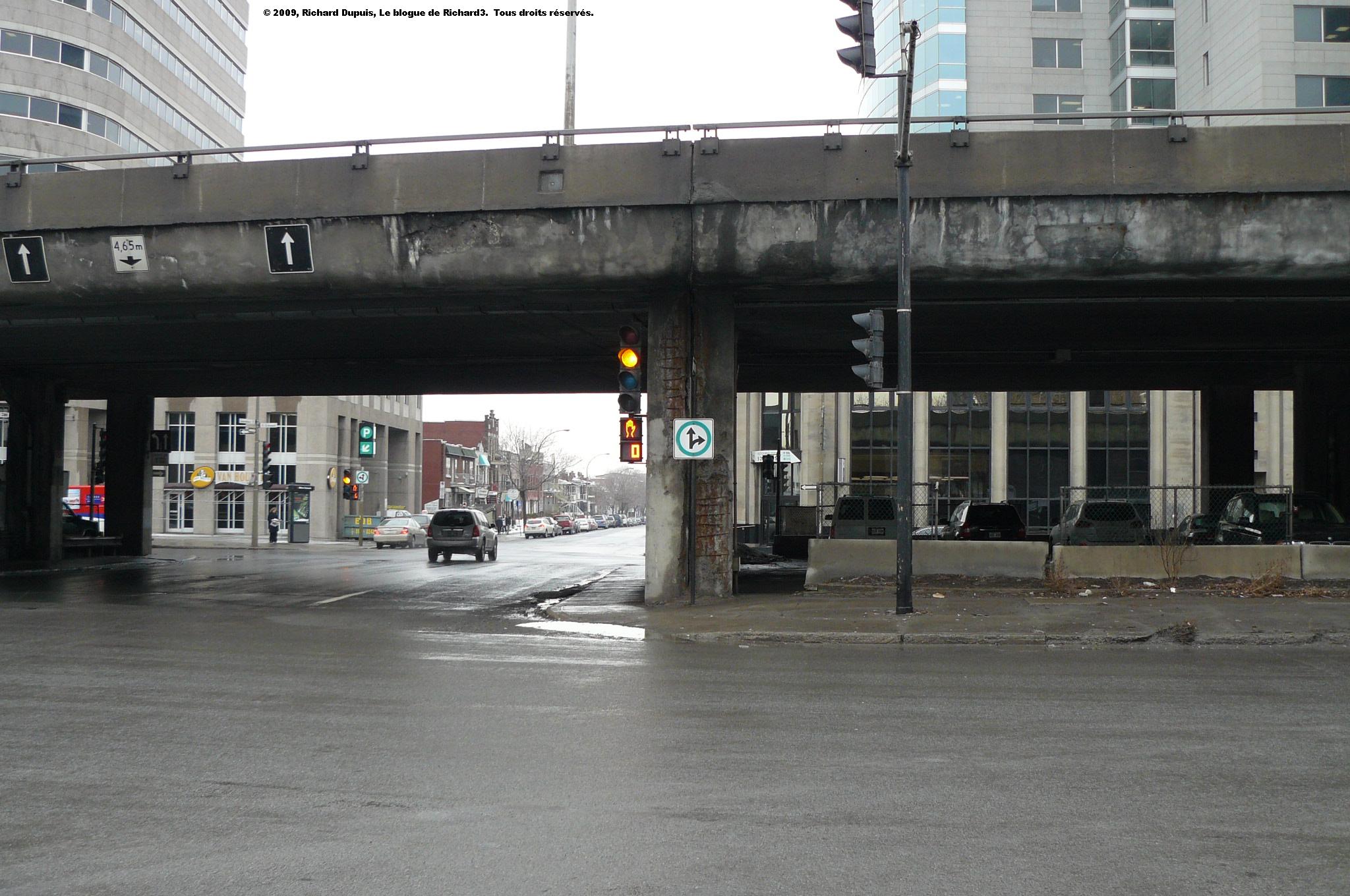 On voit ici le raccord de la sortie Papineau, bien dégoulinant, en cette journée pluvieuse.