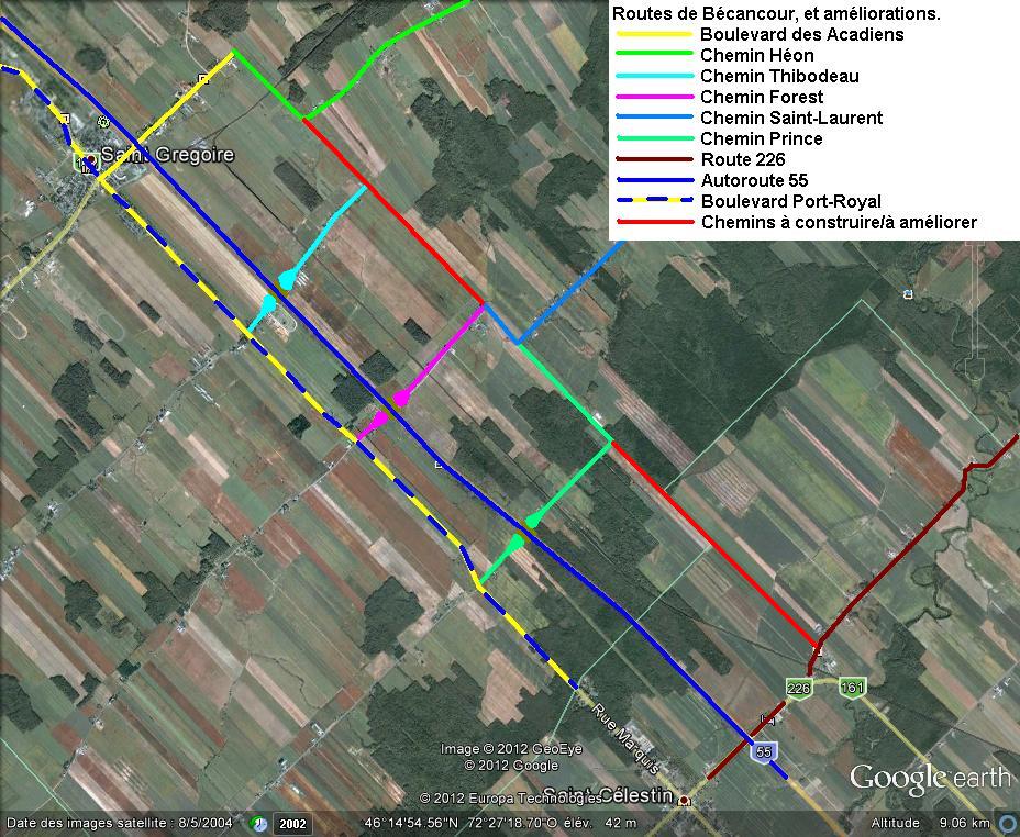 En effet, en plus du boulevard des Acadiens et de la route 226, les chemins Thibodeau, Forest et Prince ont aussi des intersections à niveau avec l’autoroute 55, et mise à part celle du chemin Forest, qui conduit au secteur Précieux-Sang de la ville de Bécancour, ces intersections sont très peu indiquées. Du côté ouest de l’A-55, ces chemins sont tous reliés au boulevard Port-Royal, alors qu’à l’est, le chemin Thibodeau est sans issue, alors que le chemin Prince est relié au chemin Saint-Laurent (prolongement du chemin Forest), mais aurait besoin d’améliorations.