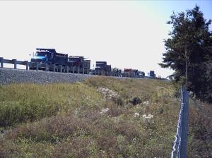 Sur l’A-10, en plus de nombreux contrats de planage et d’asphaltage, puisque cette autoroute a des airs du Liban, on remarque les contrats pour la rénovation des ponts d’étagement qui surplombent les voies ferrées, juste au nord de l’échangeur de l’A-30. Si je ne peux qu’être en accord avec le fait d’élargir à trois voies le viaduc en direction est, à cause entre autres du récent repositionnement de la sortie vers la voie de service, qui fut devancée pour donner l’accès au boulevard Leduc, et au Quartier Dix30, je me demande la raison pour laquelle il fut décidé de refaire le viaduc en direction ouest à seulement deux voies. C’est une décision tout à fait stupide, puisque tôt ou tard, il faudra élargir toute l’A-10 à trois voies par direction, jusqu’à l’A-30, dans un premier temps, puis jusqu’à l’A-35. Une autre décision à courte vue, qui explique bien pourquoi j’ai nommé ce thème « Les merdes du MTQ », dans mon blogue. Autre projet pour l’A-10, lui aussi à la hauteur de Brossard; après la démolition du viaduc qui faisait le lien entre le chemin des Prairies et la montée Gobeil, cet hiver, ce sera au tour de celui du boulevard Milan, dont la capacité portante a été limitée, depuis l’automne dernier, à 5 tonnes seulement, de passer sous le pic des démolisseurs. Des gabarits, limitant la hauteur des véhicules à 2,9 mètres, ainsi que d’autres limitateurs d’accès, furent d’ailleurs installés aux abords du viaduc Milan, de façon à contraindre les véhicules plus lourds de faire un détour via l’avenue Malo, et le boulevard Lapinière. La reconstruction de ce viaduc sera probablement adjugée par le biais d’un autre appel d’offres.