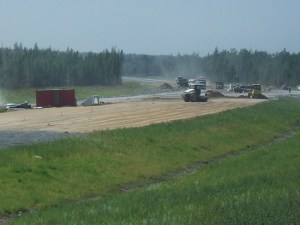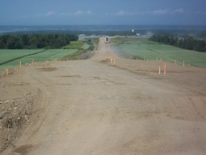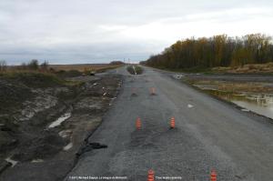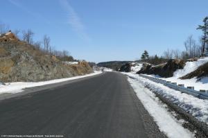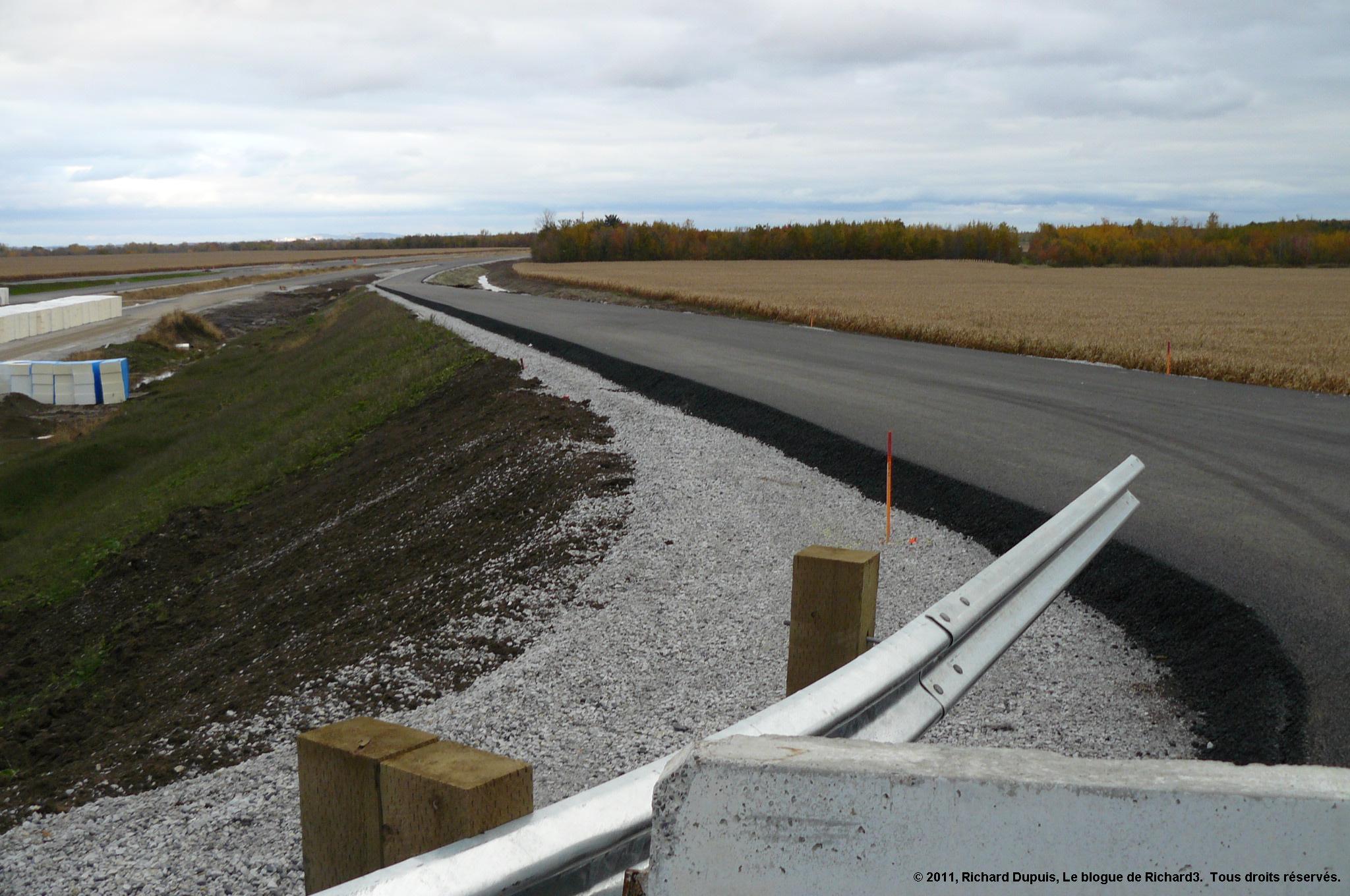 Ici, c’est la bretelle d’entrée de l’A-30 est. Il restera à recharger un peu les accotements, puis à compléter les glissières de sécurité, afin de rendre le tout fonctionnel.