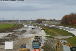 Les travaux vont bon train aussi plus à l’ouest, à la hauteur de Salaberry-de-Valleyfield, entre autres, où l’actuel tronçon de l’A-30, à une seule chaussée, deviendra l’A-530, puisque l’A-30 va bifurquer vers le nord-ouest, dans le secteur Saint-Timothée, pour aller se raccorder à l’A-20. Les travaux du tout nouvel échangeur avancent rondement, et tout le projet devrait être terminé pour décembre 2012, soit dans un peu plus d’un an. J’avoue que j’ai hâte de voir tout cela terminé, et fonctionnel.