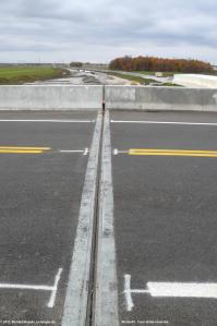 Parfois, la vie est faite de menus détails. Comme ici, sur le pont d’étagement de la route 205, à Beauharnois; les lignes de chaussée s’arrêtent aux joints de dilatation! Serait-ce que le caoutchouc des joints ne supporte pas la peinture? Franchement!