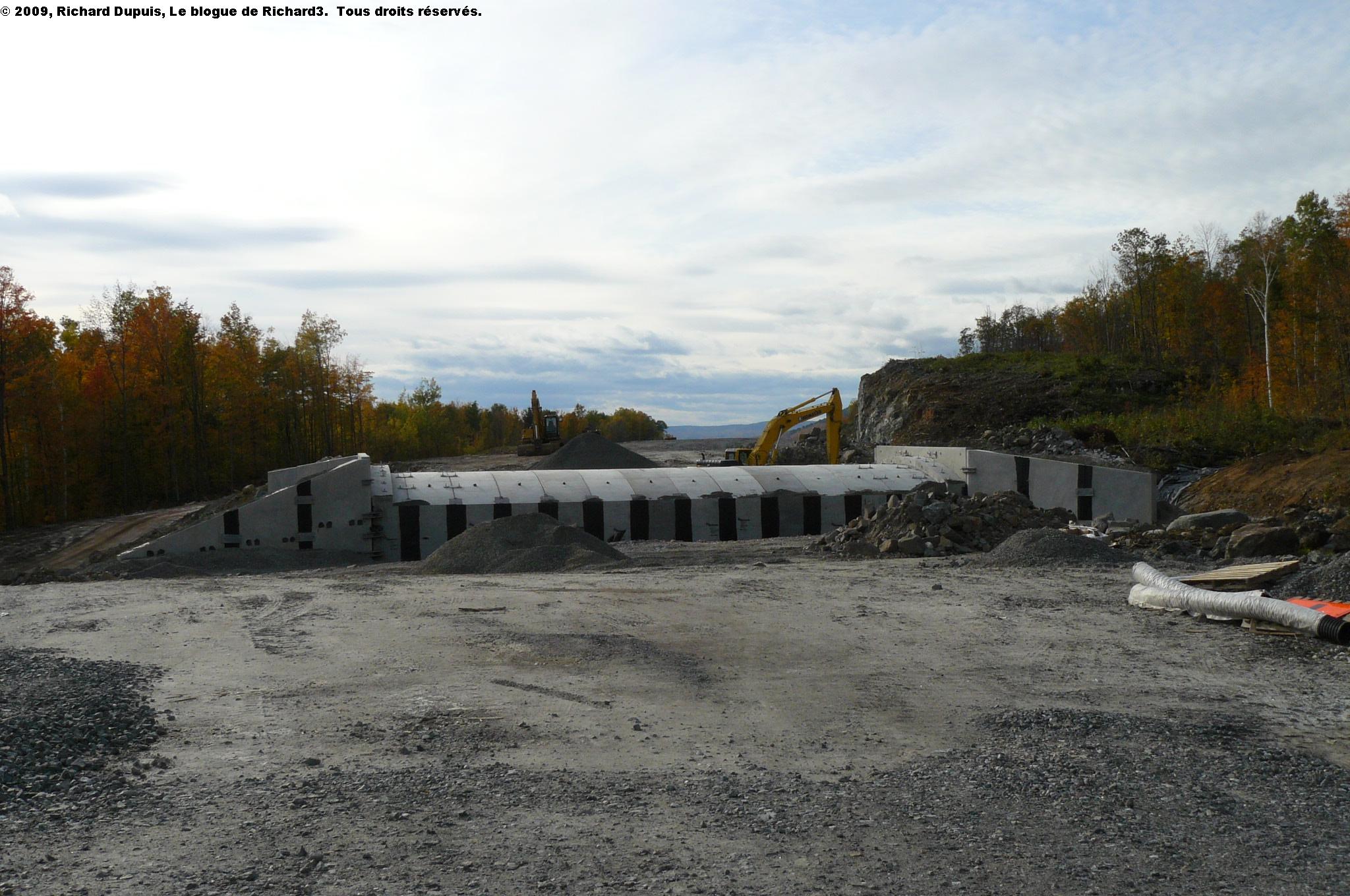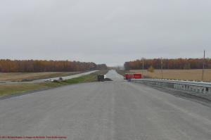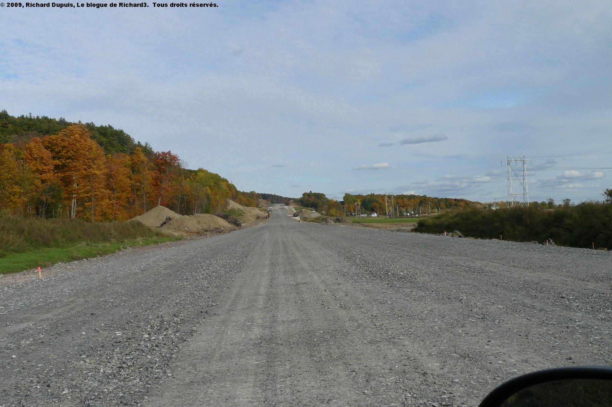 À l’ouest de la montée Boucher, le terrassement de base de la chaussée est construit depuis maintenant deux ans, et ce sur une distance d’environ dix kilomètres, soit jusqu’à l’échangeur de la montée Fassett.  Ce sera le dernier billet illustré à l’aide des photos de l’Action de grâces.