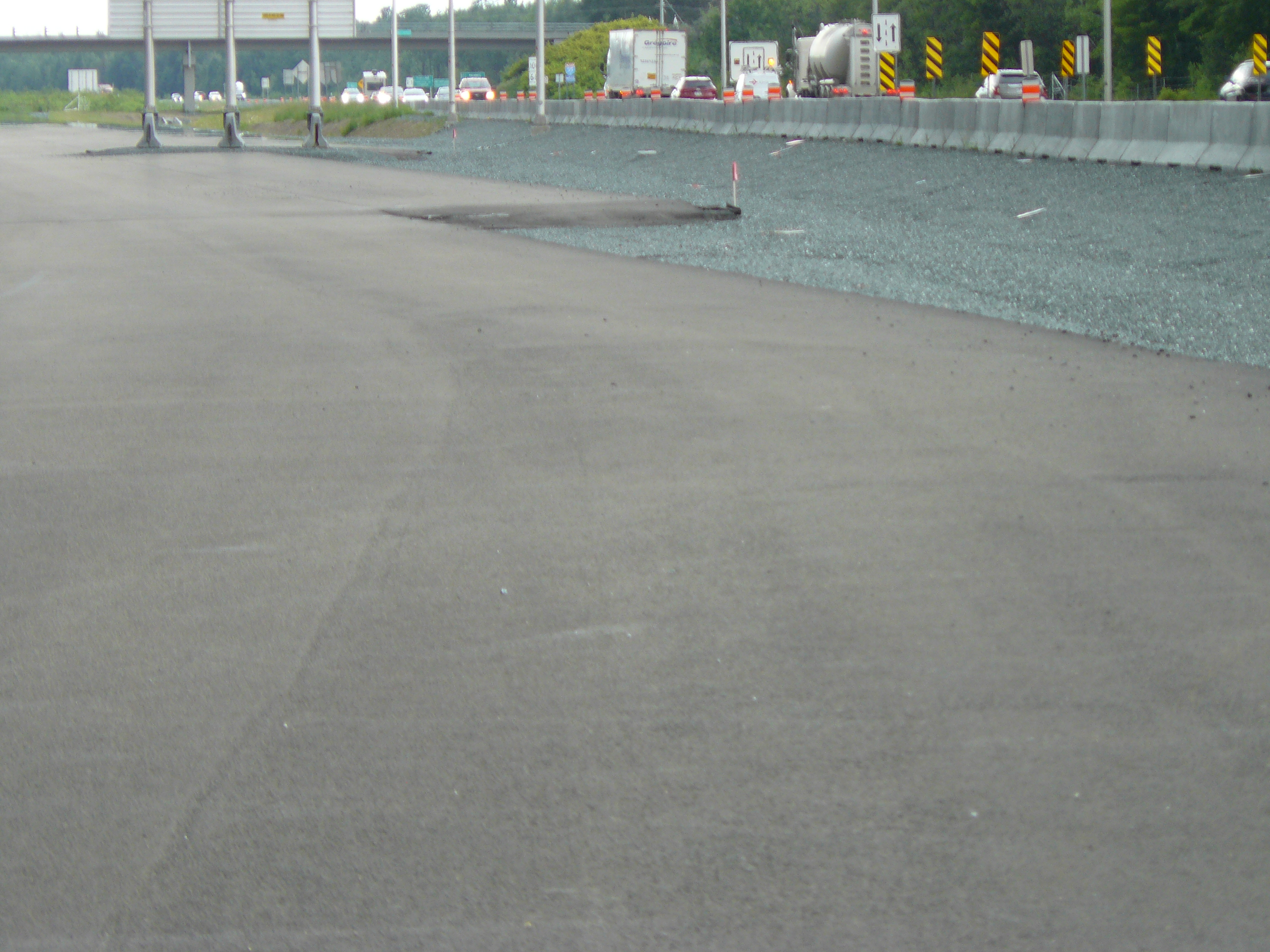 Il faut comprendre qu’à cet endroit, soit entre la pesée routière et l’échangeur A-40/A-55 (des km 192 à 196), il y a deux “effet-de-crête” qui, à eux seuls, revendiquent un tas de collisions. D’ailleurs, à la fin de chaque été, le pavage de l’A-40 est tapissé de traces de freinage. Il y a deux ans, un couple de cyclistes avait trouvé la mort, leur véhicule ayant été écrasé entre deux camions lourds, ne leur laissant aucune chance de survie. Depuis, un vélo est attaché à la clôture qui longe l’autoroute.