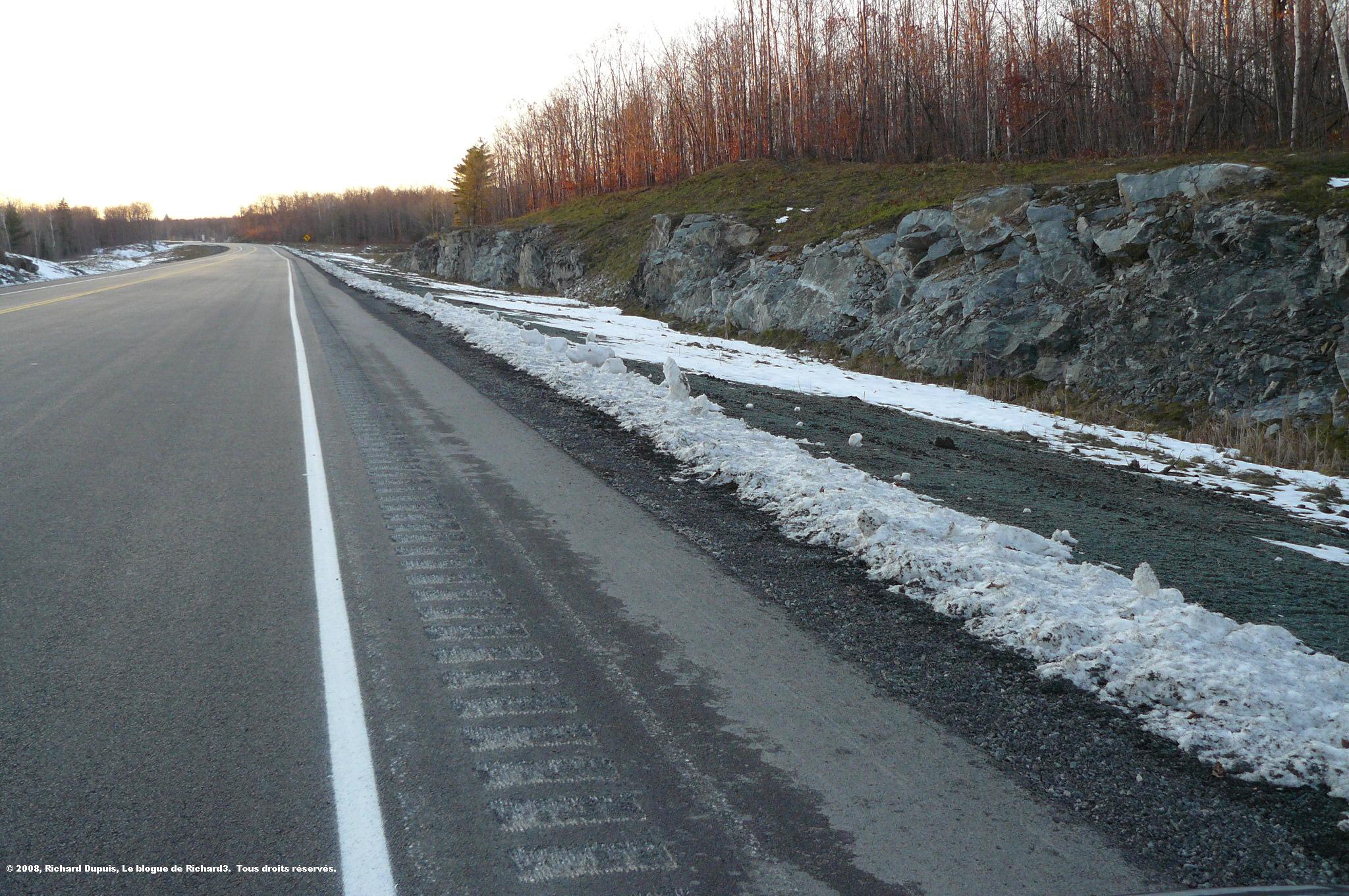 Il faut comprendre qu’à cet endroit, soit entre la pesée routière et l’échangeur A-40/A-55 (des km 192 à 196), il y a deux “effet-de-crête” qui, à eux seuls, revendiquent un tas de collisions. D’ailleurs, à la fin de chaque été, le pavage de l’A-40 est tapissé de traces de freinage. Il y a deux ans, un couple de cyclistes avait trouvé la mort, leur véhicule ayant été écrasé entre deux camions lourds, ne leur laissant aucune chance de survie. Depuis, un vélo est attaché à la clôture qui longe l’autoroute.