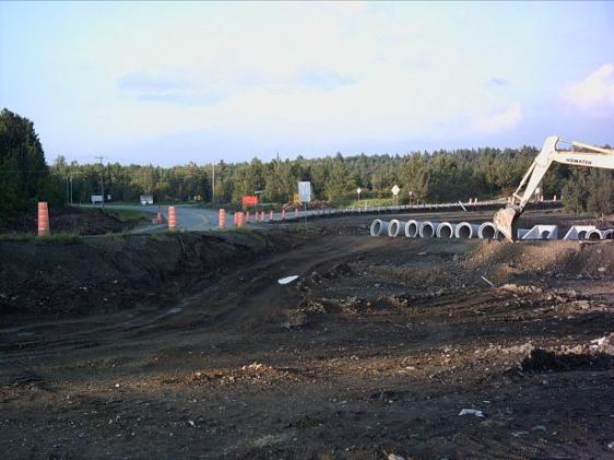…je me tourne d’une trentaine de degrés vers la droite, pour prendre le terrassement de la nouvelle chaussée, sur laquelle passe des véhicules,…