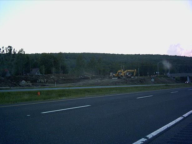 Un commentaire de Stéphane Dumas, un lecteur – et commentateur – régulier du blogue de Richard3, traitait de l’échangeur A-51/A-55, juste au sud de Richmond. De mon côté, j’ai toujours cru que la meilleure ligne pour l’A-55, si elle avait été construite en entier, aurait été de rejoindre l’A-51 à la hauteur de Windsor, un peu plus au sud. Les derniers arguments de Stéphane, à savoir des viaducs existants, et la courbe inhabituelle du chemin Keenan, qui longe l’autoroute, dans le canton de Melbourne, ont éveillé ma curiosité. Je me suis donc rendu, sur un coup de tête, au lieu dit, pour fins de constatations. C’est donc sous la pluie que j’ai dû me rendre à l’évidence; je devrai jeter ma théorie de Windsor aux poubelles!