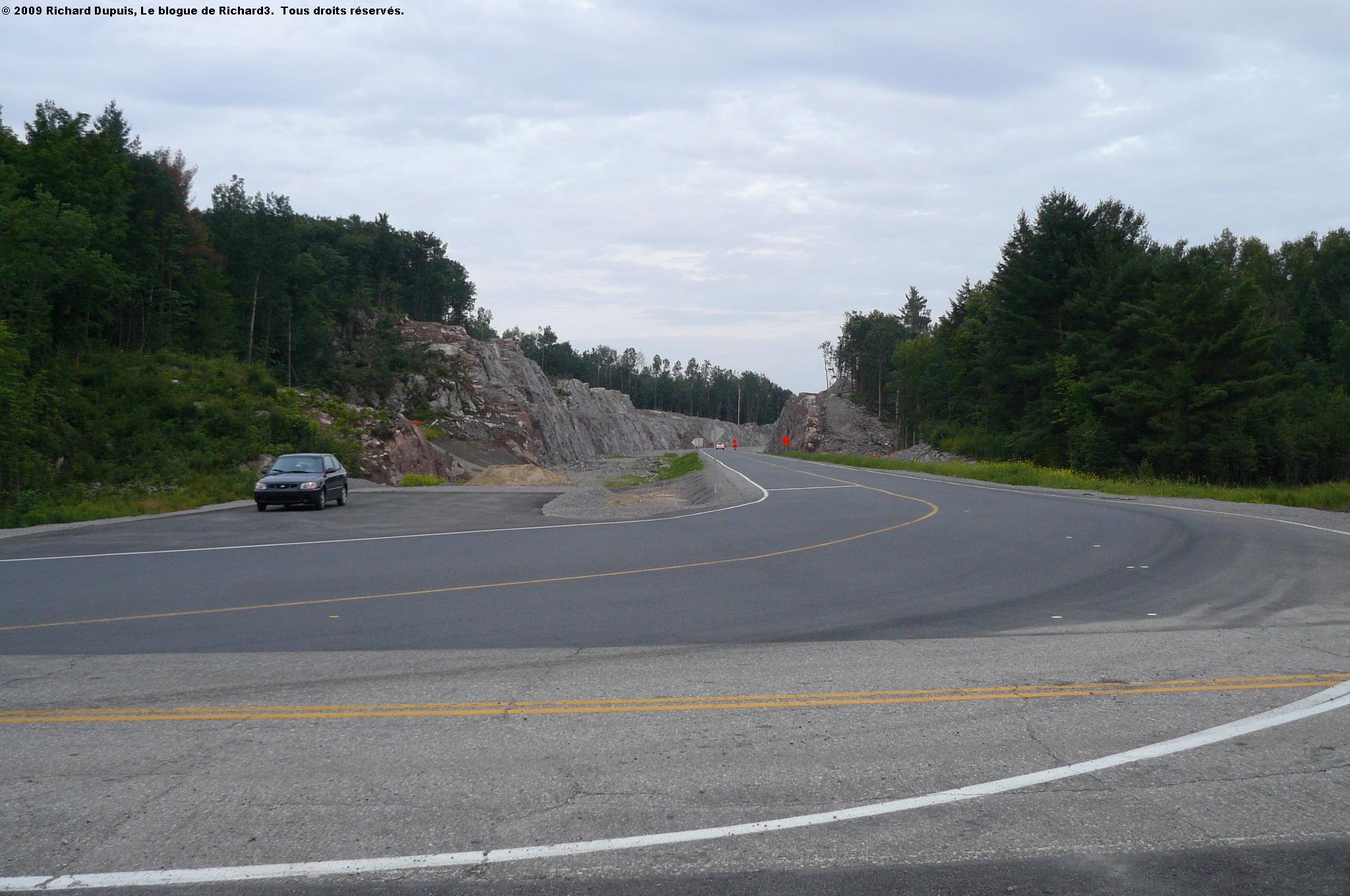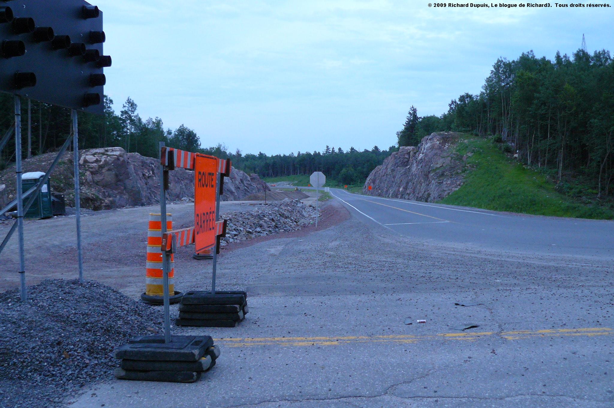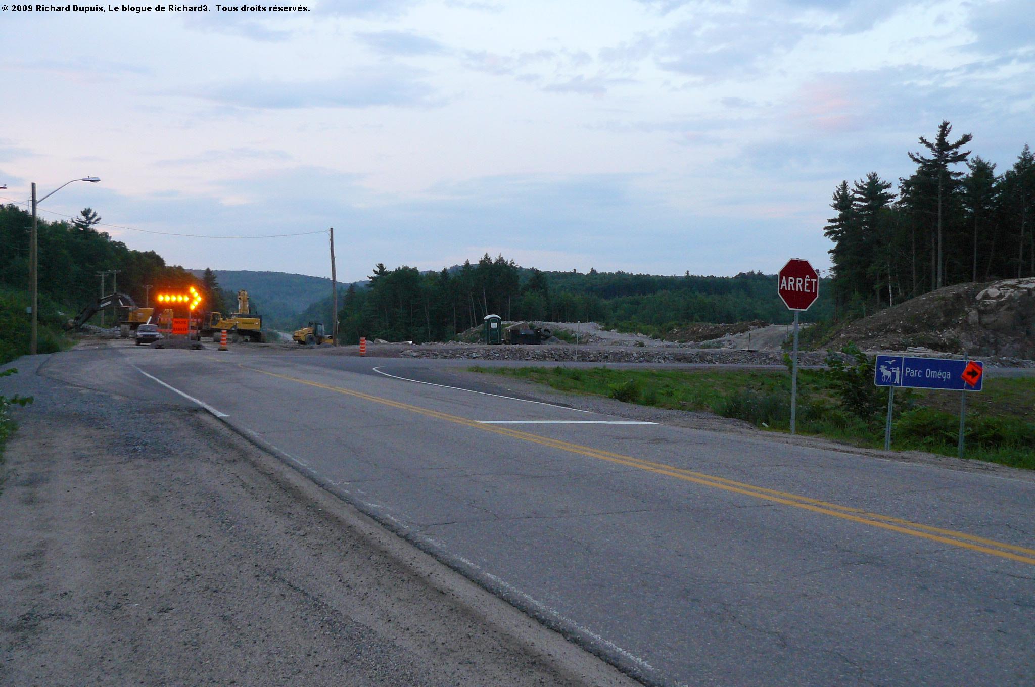 Voici les bretelles de l’A-50, en direction ouest; la bretelle d’entrée sert de chemin de détour, alors que la bretelle de sortie est à peine commencée.