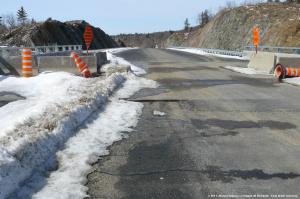 Je dois d’abord mentionner que je suis désolé, puisque ces photos datent de presque quatre mois. Je les ai prises en juin dernier, lors de deux sorties distinctes. La première, le 1er juin dernier, m’a permis de prendre une seule photo du chantier du nouveau pont des Piles, à Shawinigan, photo sur laquelle, j’avoue, on ne voit pas grand chose. La seconde sortie date du 26 juin, et se résume à quelques photos de la future fin de l’A-55, à la hauteur de l’A-20, à Sainte-Eulalie, c’est à dire là où il ne se passe rien depuis la fonte des neiges. Voyons voir…