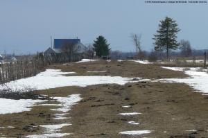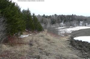 …pour constater que les vaches bousent beaucoup plus sur la plaine que dans les pentes abruptes, mais surtout qu’au bout de la ligne droite, les clôtures tendent vers la droite, tout juste derrière cette maison. C’est là que se trouve la grande courbe, qui s’aligne à la route Paquin.